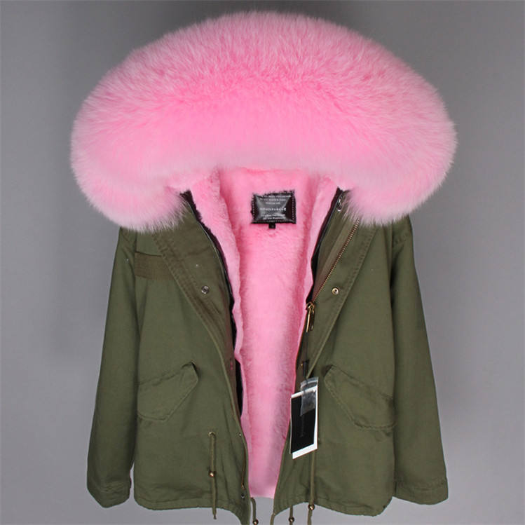 Description:Woman Pink Fur Short Parka