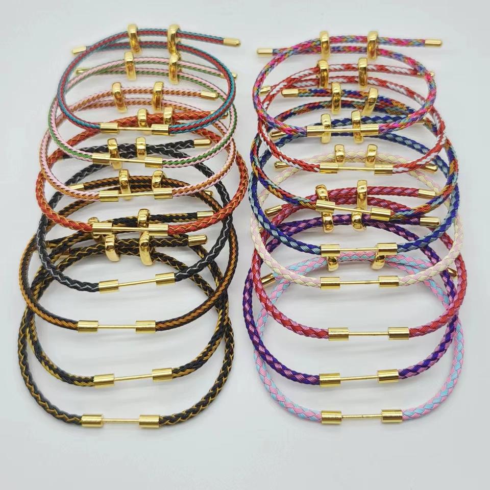Bracelet en corde métallique en gros, avec fermoir coulissant en forme de 8, barre transversale à vis amovible, pour la création de bijoux DIY en corde tressée pour femmes et hommes