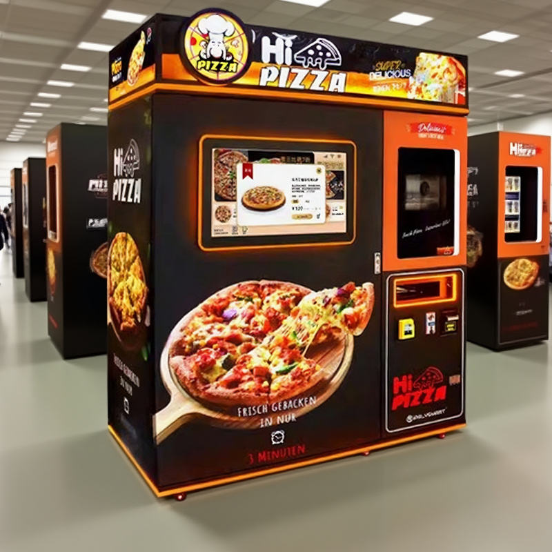 Vente en gros avec écran tactile personnalisé extérieur entièrement automatique distributeur automatique de pizzas frais rapides plats chauds