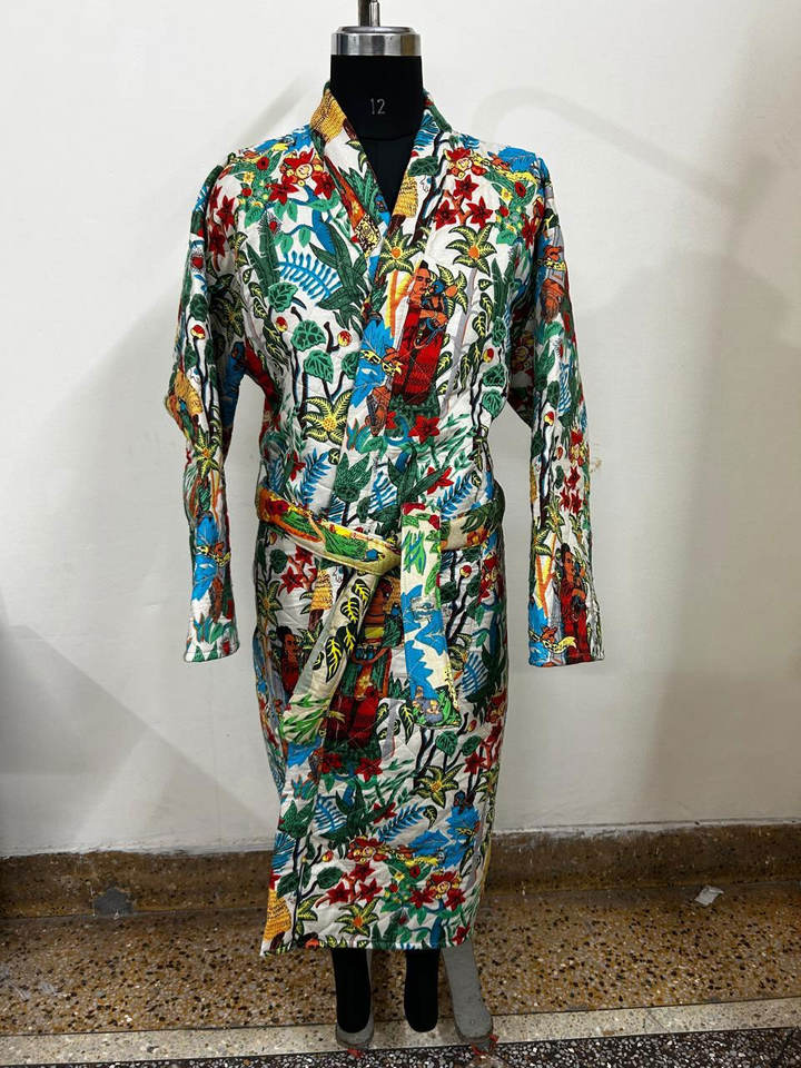 Wholesale Women Blue Animal Print Quilted Cotton Long Jacket Winter Autumn Padded Wrap Coat with Belt Fashion Outerwear
