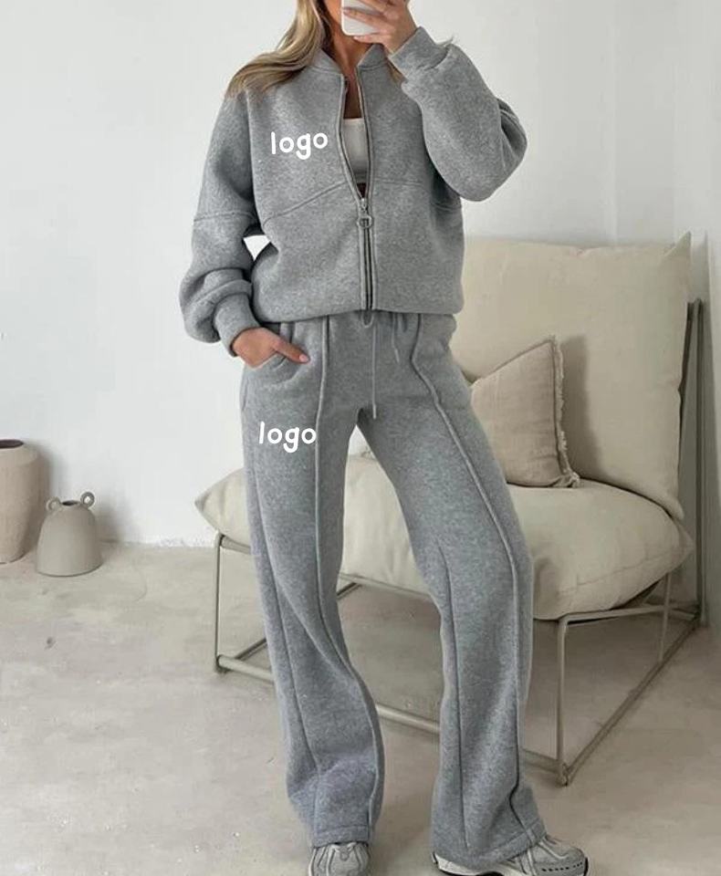 Wholesale Women Casual Tracksuit Set High Quality Regular Fit Fleece Sports Pants Zipper Long Sleeve Jacket Breathable