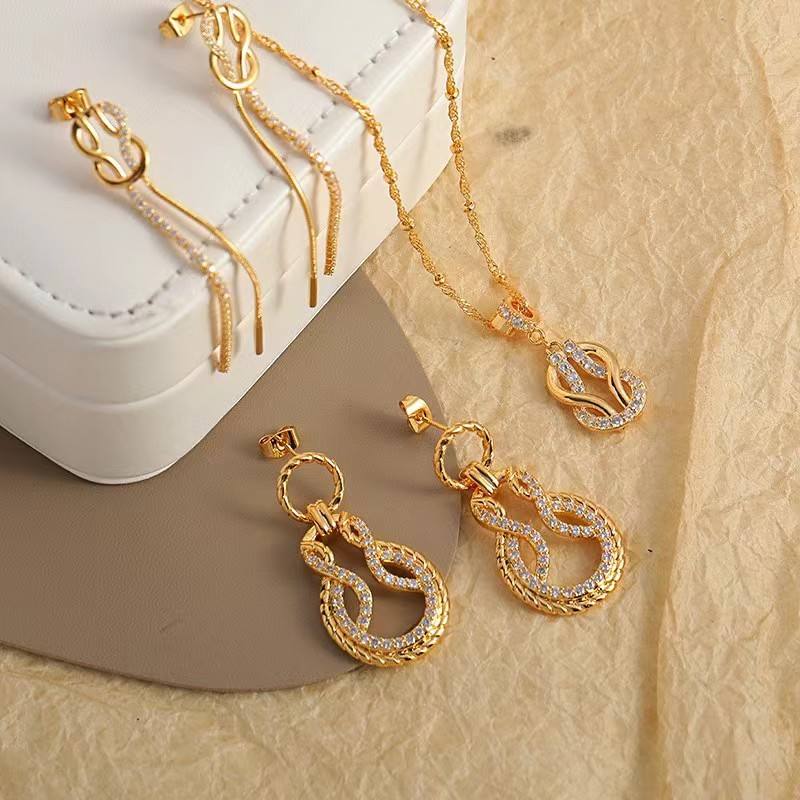 Wholesale Women Golden Luxury Round Earring Twine Hoop Huggie Earring Necklace Jewelry Sets