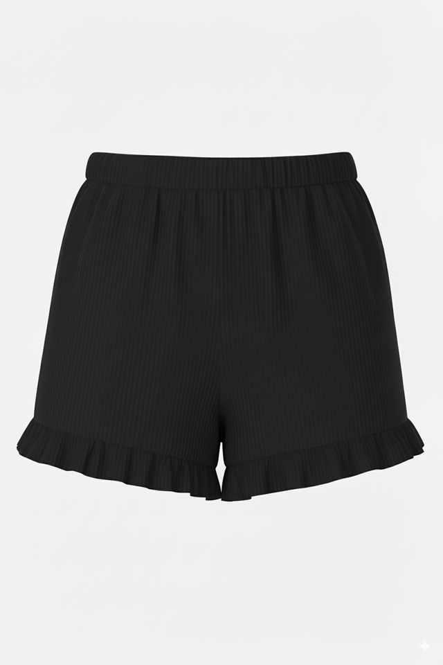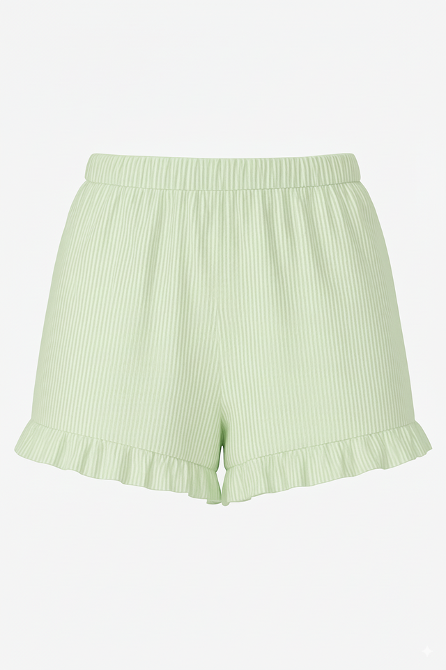 Vêtements pour femmes en gros, shorts décontractés à ourlet volanté en tricot côtelé respirant à haute élasticité, fabricant de vêtements d'usine