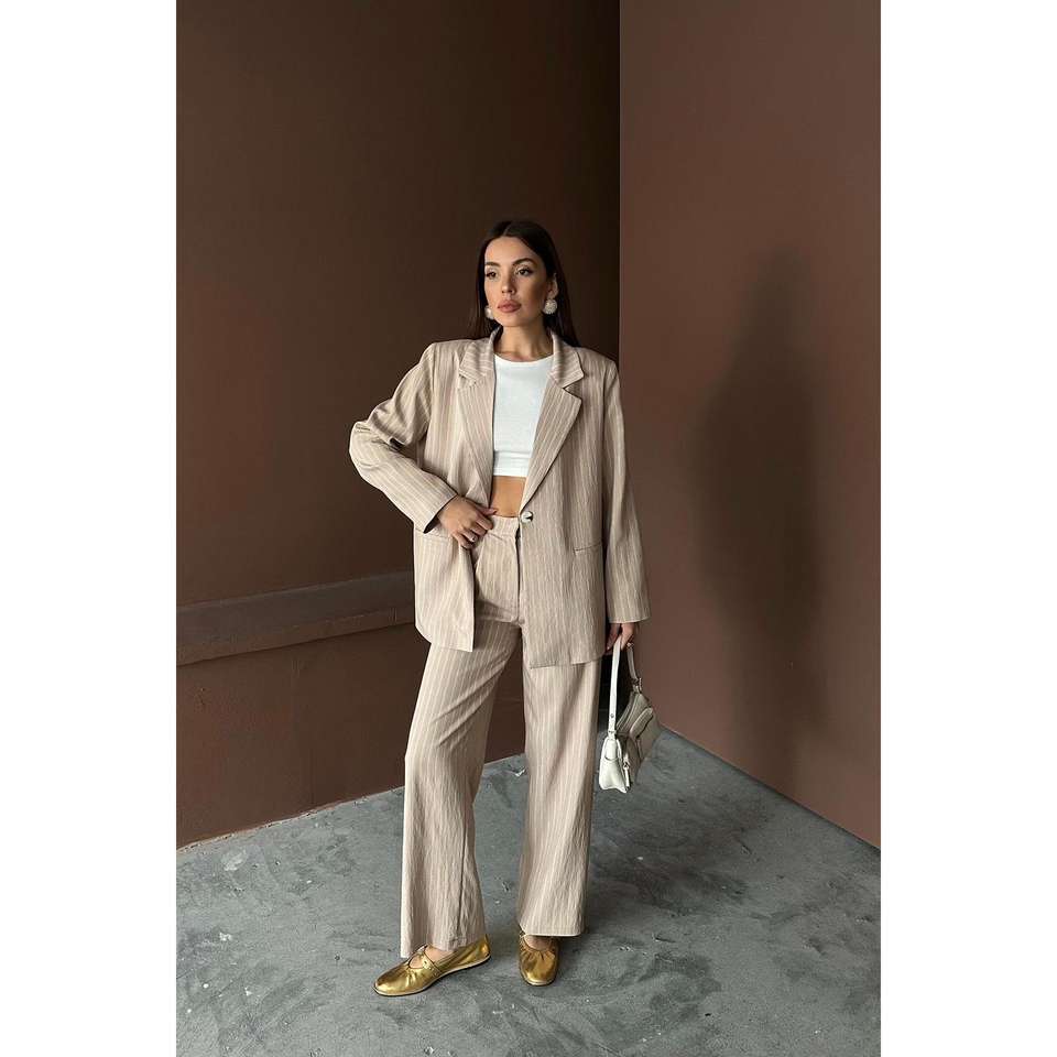 Wholesale Women's Beige Striped Jacket and Pants Suit Set