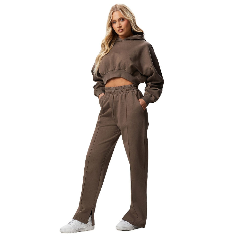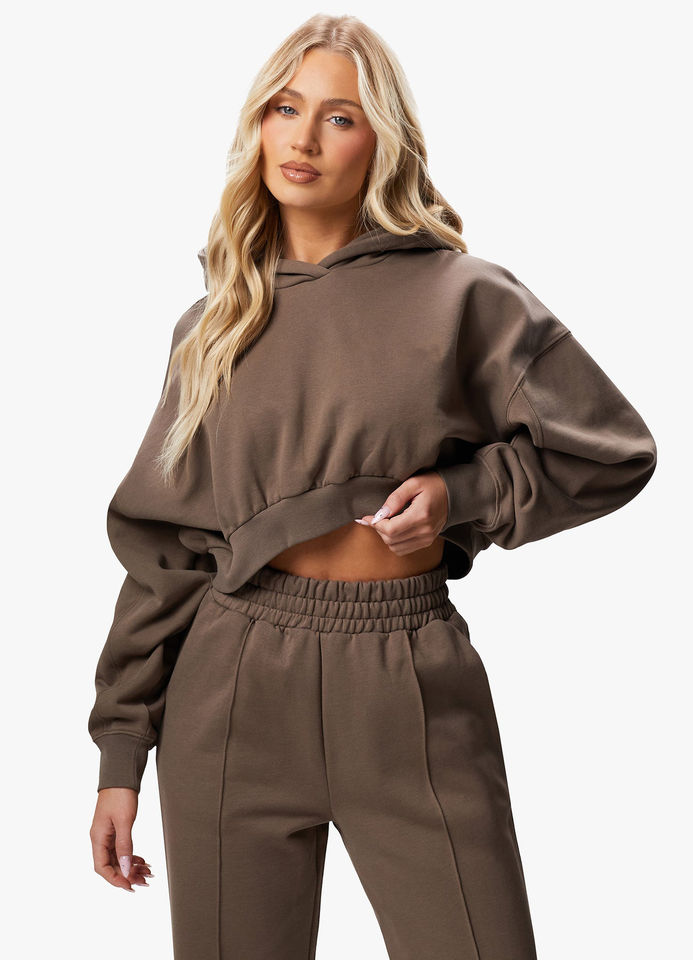 Wholesale Women's Crop Hoodie and Jogger Tracksuit Set Deep Mink Color Drop Shoulder Cropped Fit Made in Pakistan