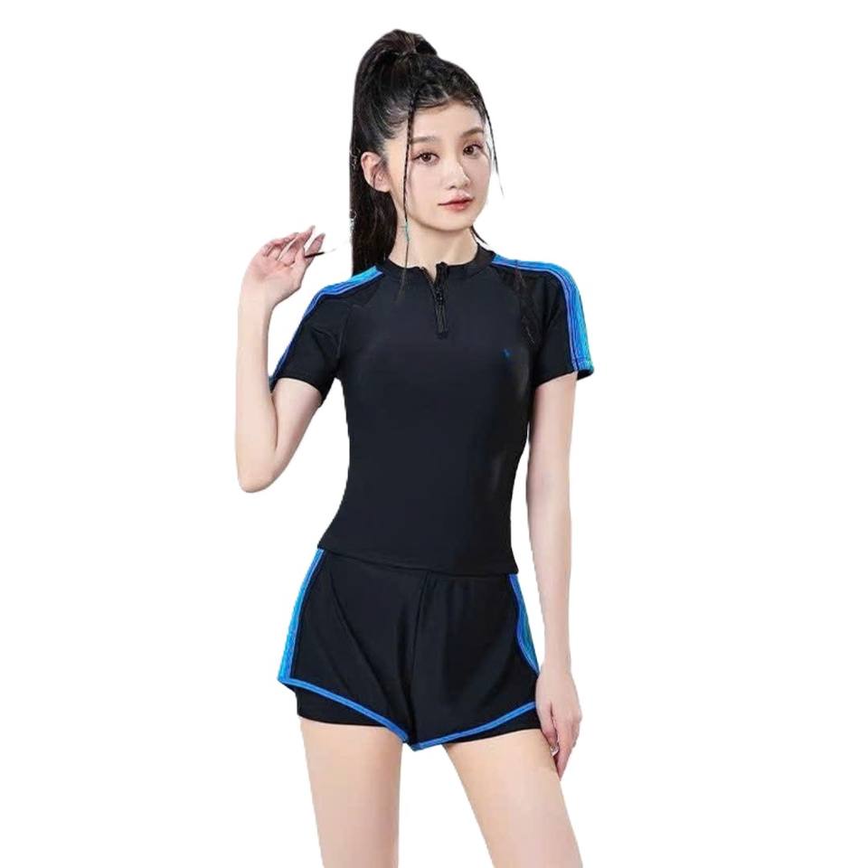 Wholesale Women's Full-Body Solid Black Blue 2-Piece Jammer Swimsuit Set Waterproof Nylon-Spandex Anti-UV Quick Dry Front Print