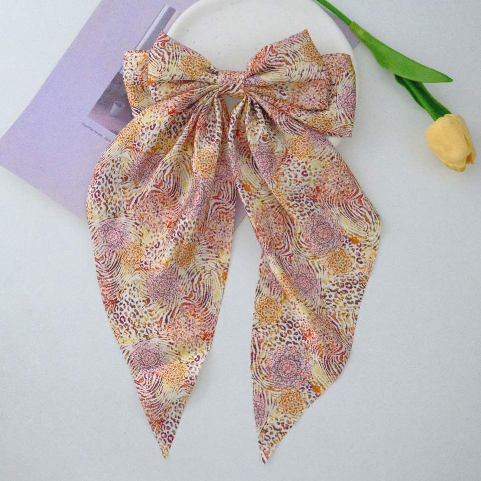 Wholesale Women's Leopard Hair Clip Big Bow Barrette with Long Tail Ribbon Hair Accessories