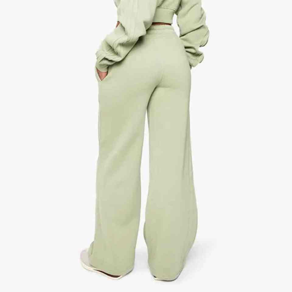 Wholesale Women's Mid Waist Regular Fit Straight Leg Sweatpants Seam Detail Elastic Waist Drawstring Terry Fleece 300g Soft