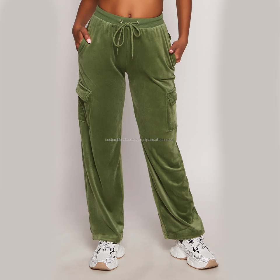 Ensemble de veste courte en velours vintage brodée unie pour femmes et pantalon cargo ample en gros