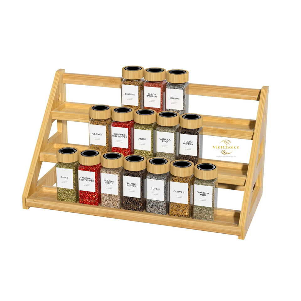 Wholesale Wooden Spice Rack Natural Solid Wood Spice Organizer for Kitchen Countertop Storage