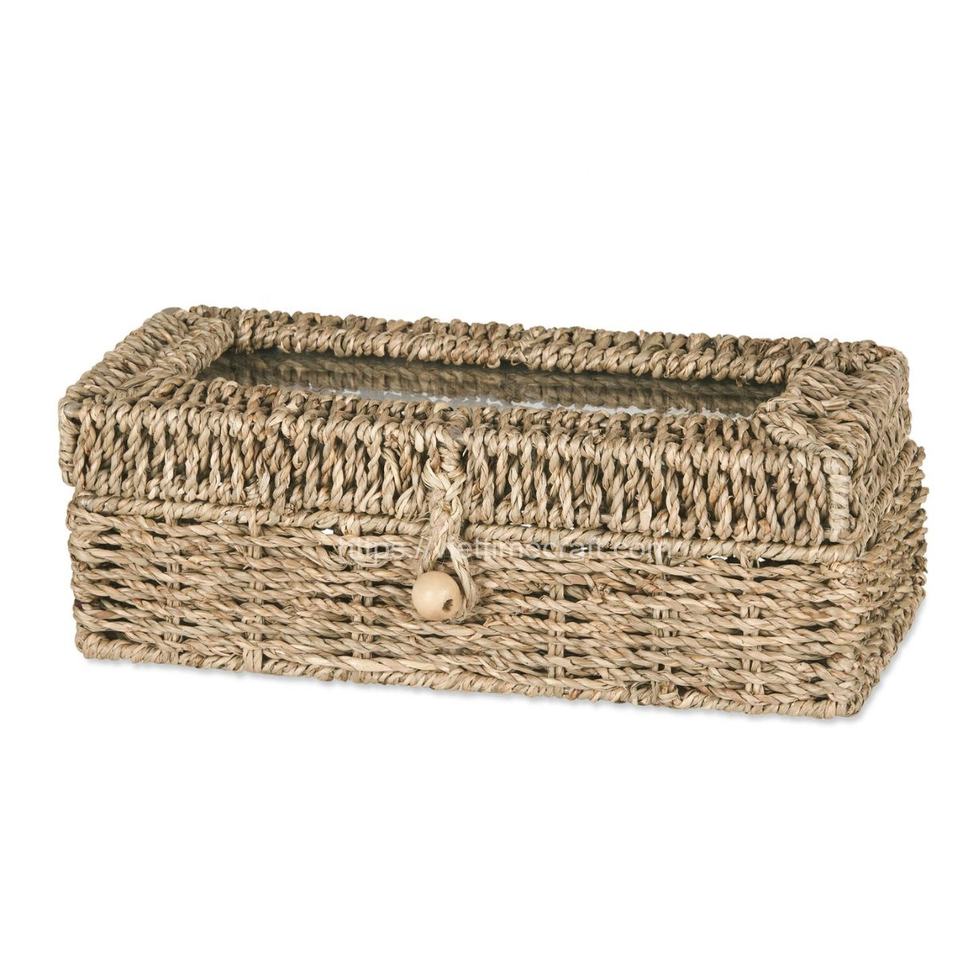 Boîte de rangement de bijoux en jonc de mer tissé de taille personnalisée en gros avec miroir en forme de rectangle décoration de la maison de Viettimecraft