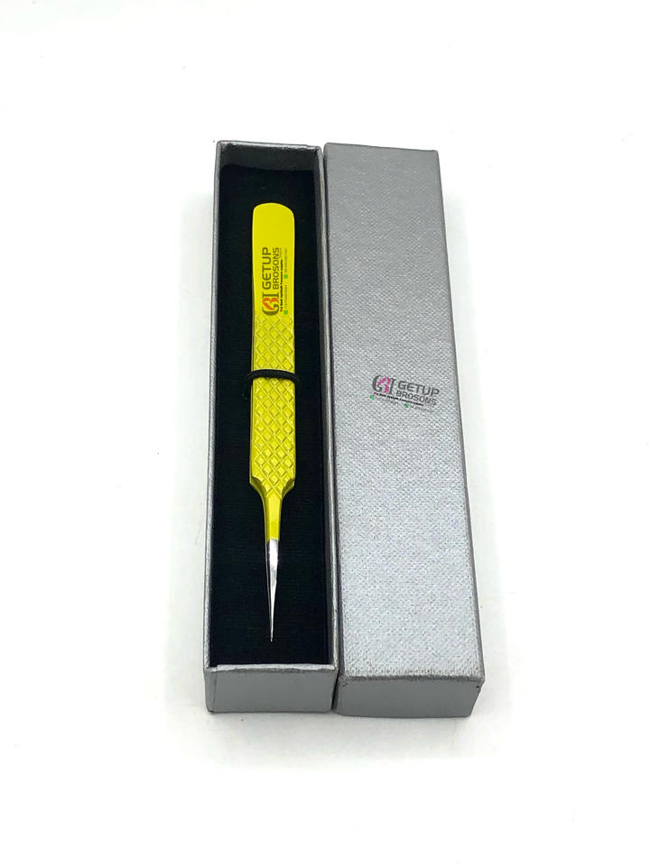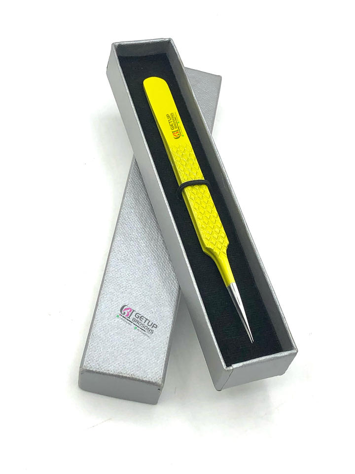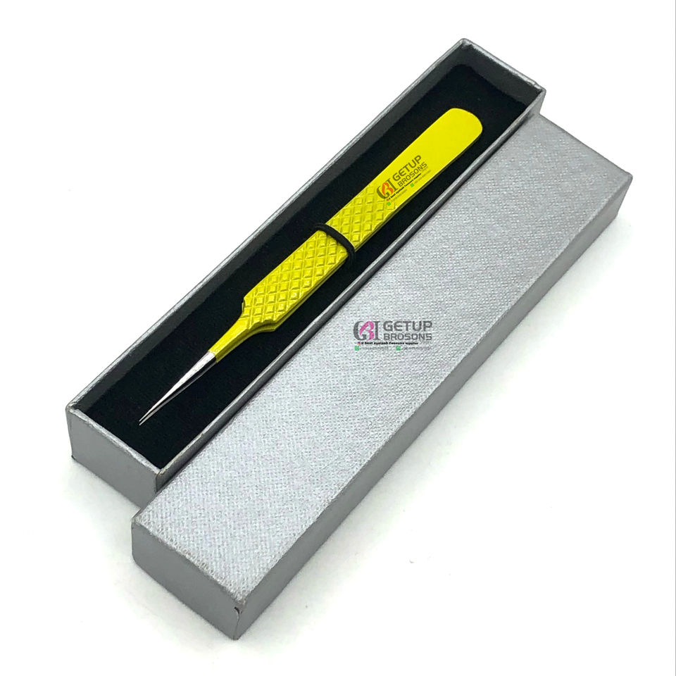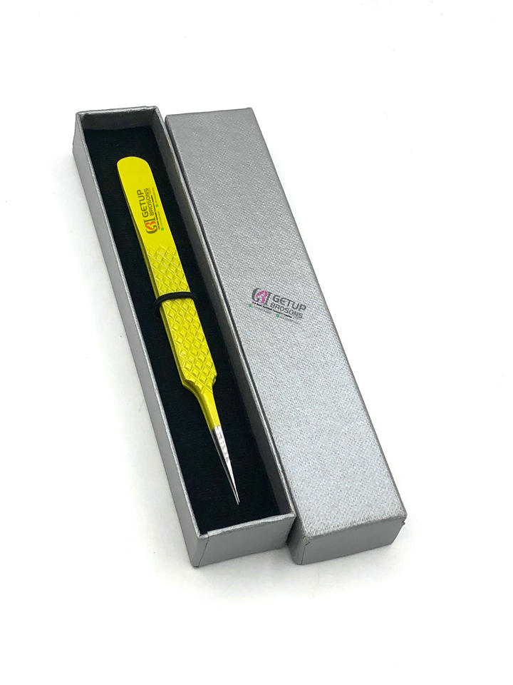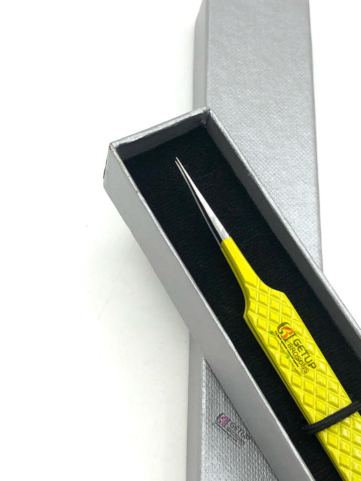 Pince à épiler d'extension de cils à prise diamant à pointe droite en poudre jaune Pro Instruments de beauté avec logo personnalisé Vente en gros