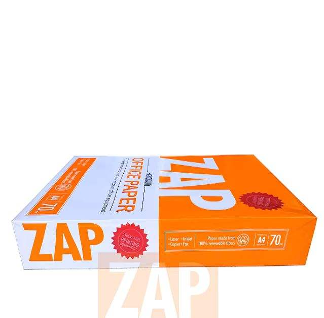 Vente en gros ZAP Office Meilleur prix Haute qualité A4 80gsm/75gsm/70gsm copie papier pur blanc approvisionnement en vrac pour l'impression de bureau