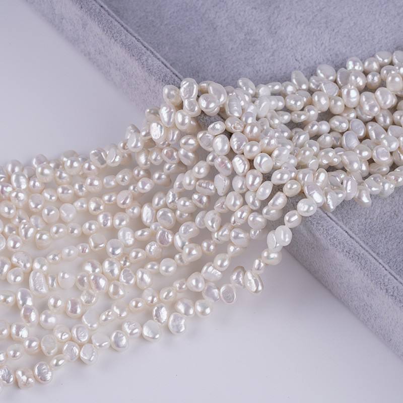Wholesale Zhuji DIY Natural Freshwater Baroque Shaped Pearl String 5-6mm Two Sided Light Seven Hole Loose Pearls for Creative