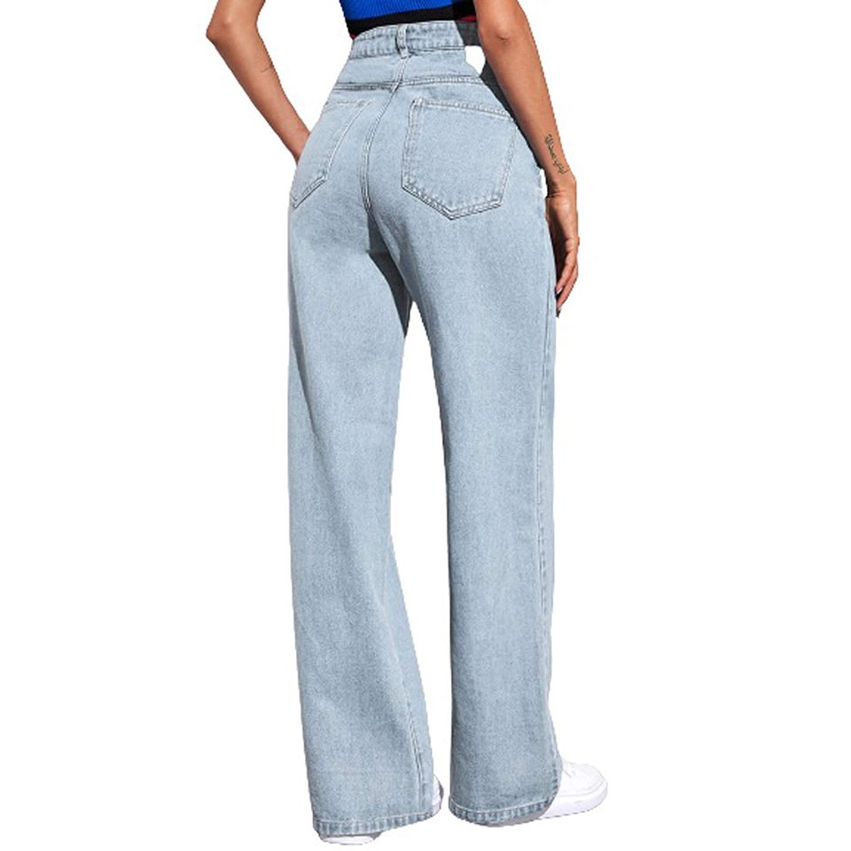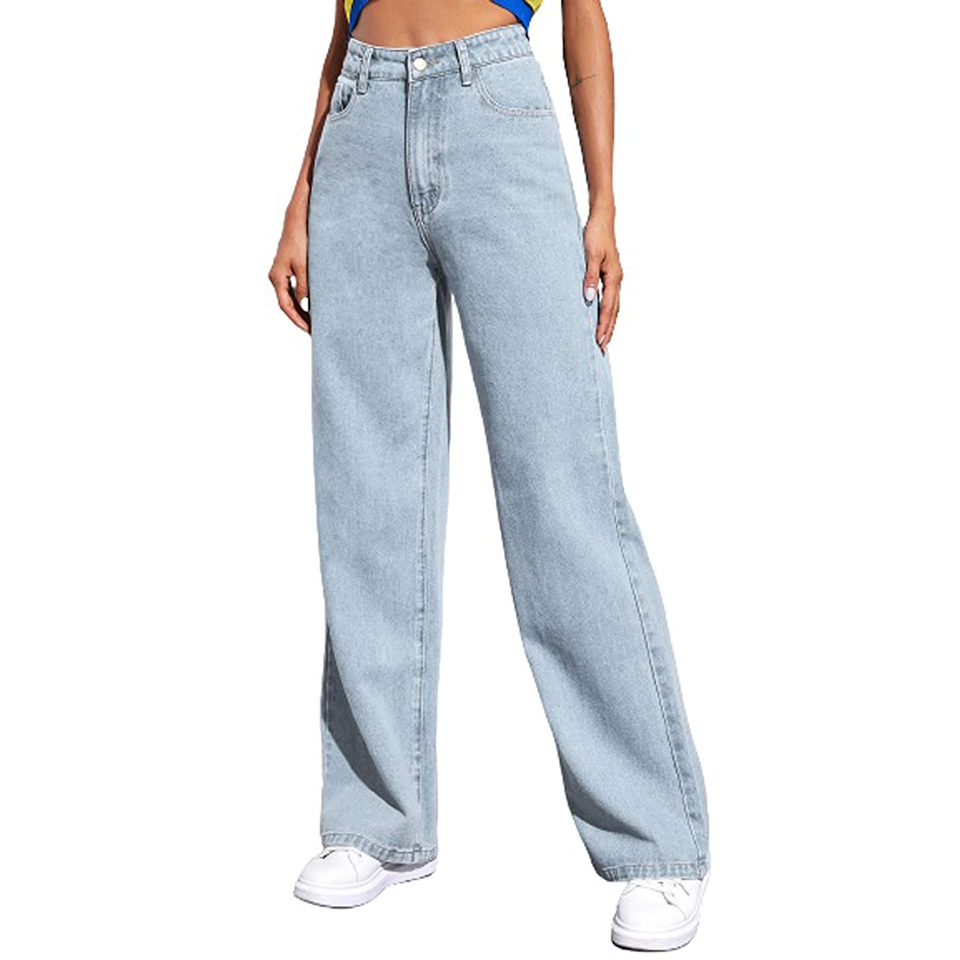 Pantalon en jean décontracté à jambes larges pour femmes, couleur unie, taille haute, pleine longueur, du Bangladesh, prix de gros et bon marché