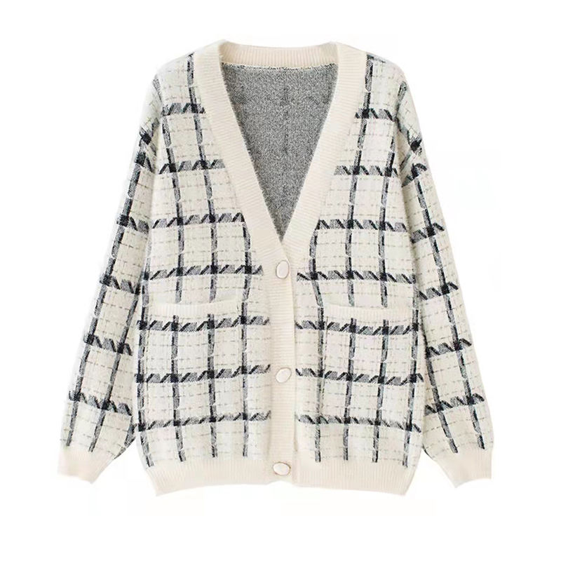Vente en gros et au détail Fabricant de vêtements sur mesure Cardigan à col en V grande taille pour femmes Pull en tricot pour femmes