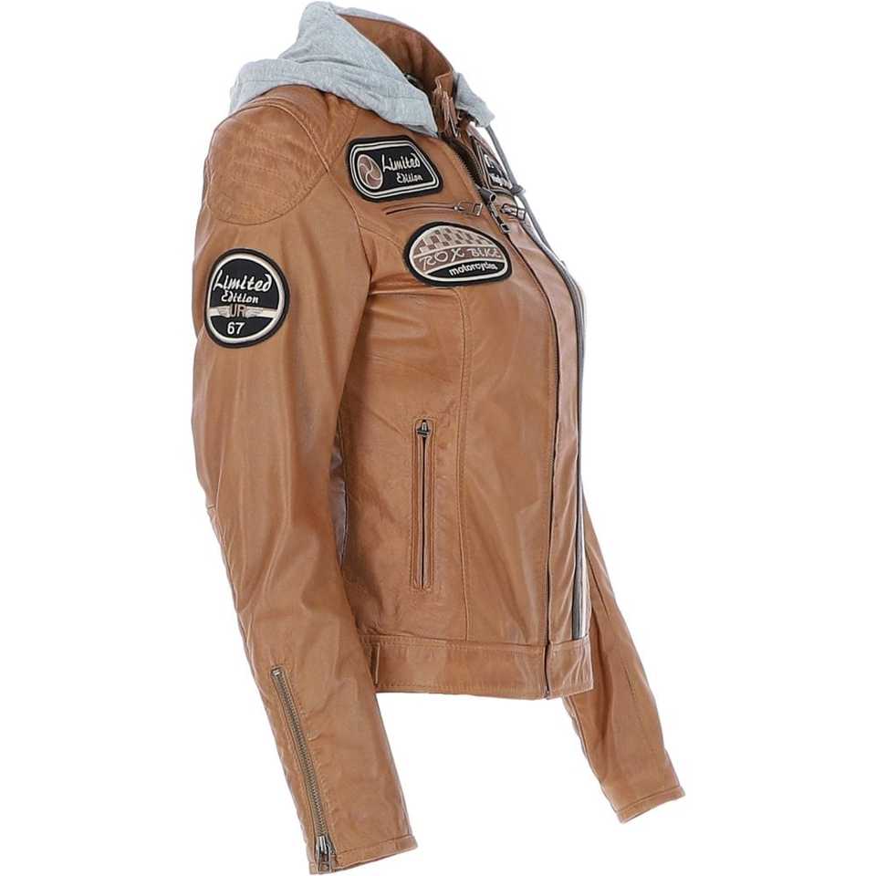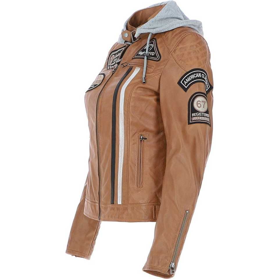 Women's Brown Biker Jacket Detachable Hood Stand Collar Winter Season Casual Zips Patches Professional Manufacturing Wholesale