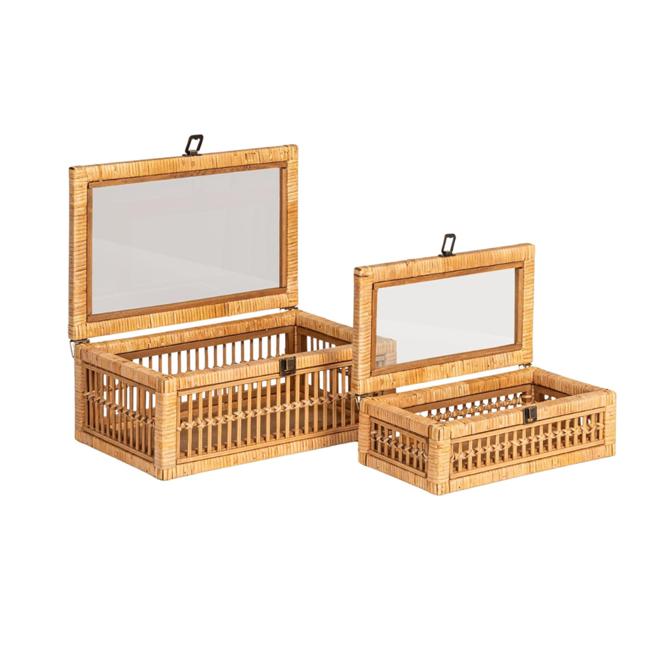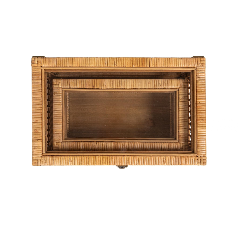 Product name:Rattan and bamboo nestable storage boxes with glass lids