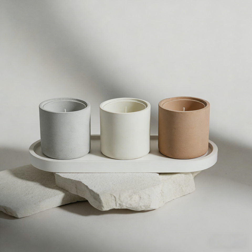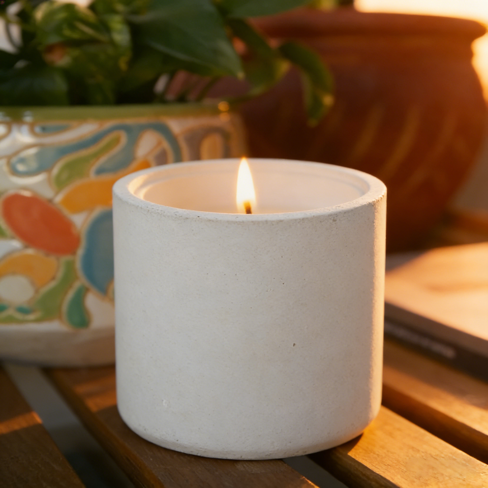 Ventes en gros de pots à bougies en béton ronds gravés avec logo personnalisé, pots à bougies en béton avec couvercle, étiquette privée personnalisée, pot à bougie parfumée en béton