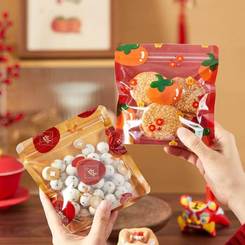 Sacs personnalisés en gros pour biscuits, emballages de bonbons, flocons de neige, nougat, sacs à fermeture éclair auto-scellants pour snacks, sacs de cuisson à fond plat