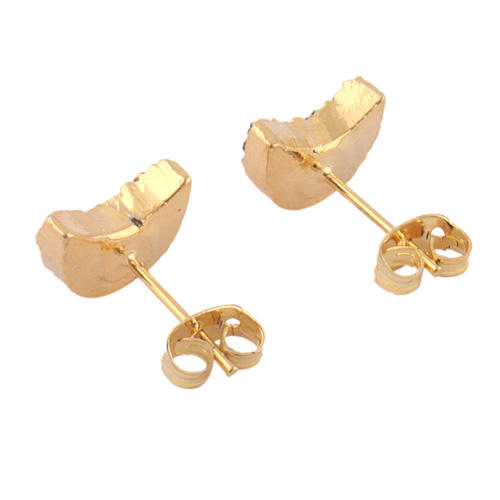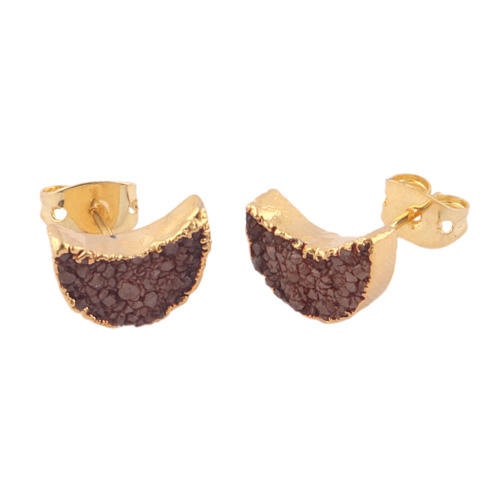Croissant de lune druzy boucle d'oreille véritable étincelle cristal brun sucre agate druzy oreille goujon plaqué or petite paire boucle d'oreille en laiton