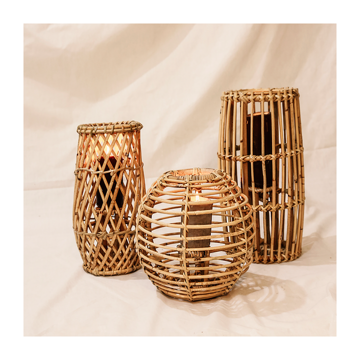Wholesale Garden Lantern Vintage Rustic Farmhouse Rattan Decorative Candle Lanterns for Indoor Outdoor Decoration