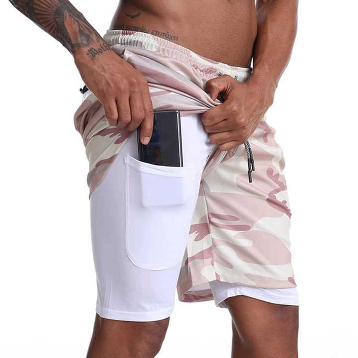 Wholesale gym wear casual pants 5 inch inseam double layers Mesh Shorts with Compression Custom 2 in 1 shorts Gym Towel bag