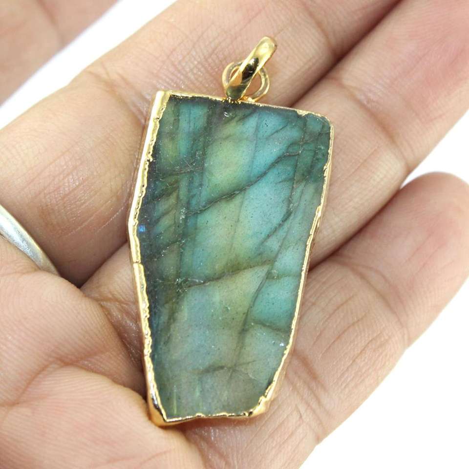Gros Offre Spéciale naturel vert feu labradorite pendentif or électrolytique pendentif solitaire dalle grande taille irrégulière pendentif