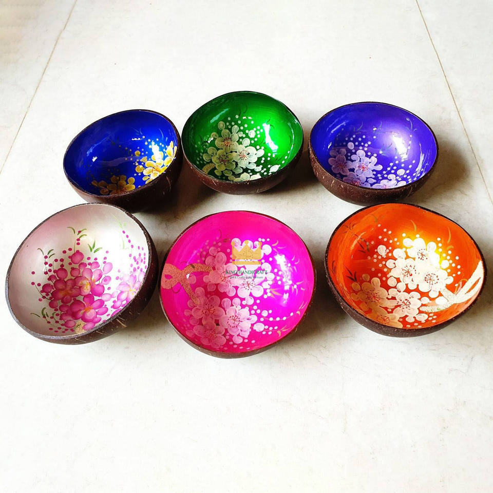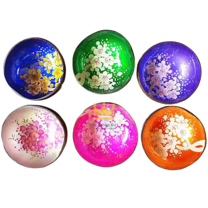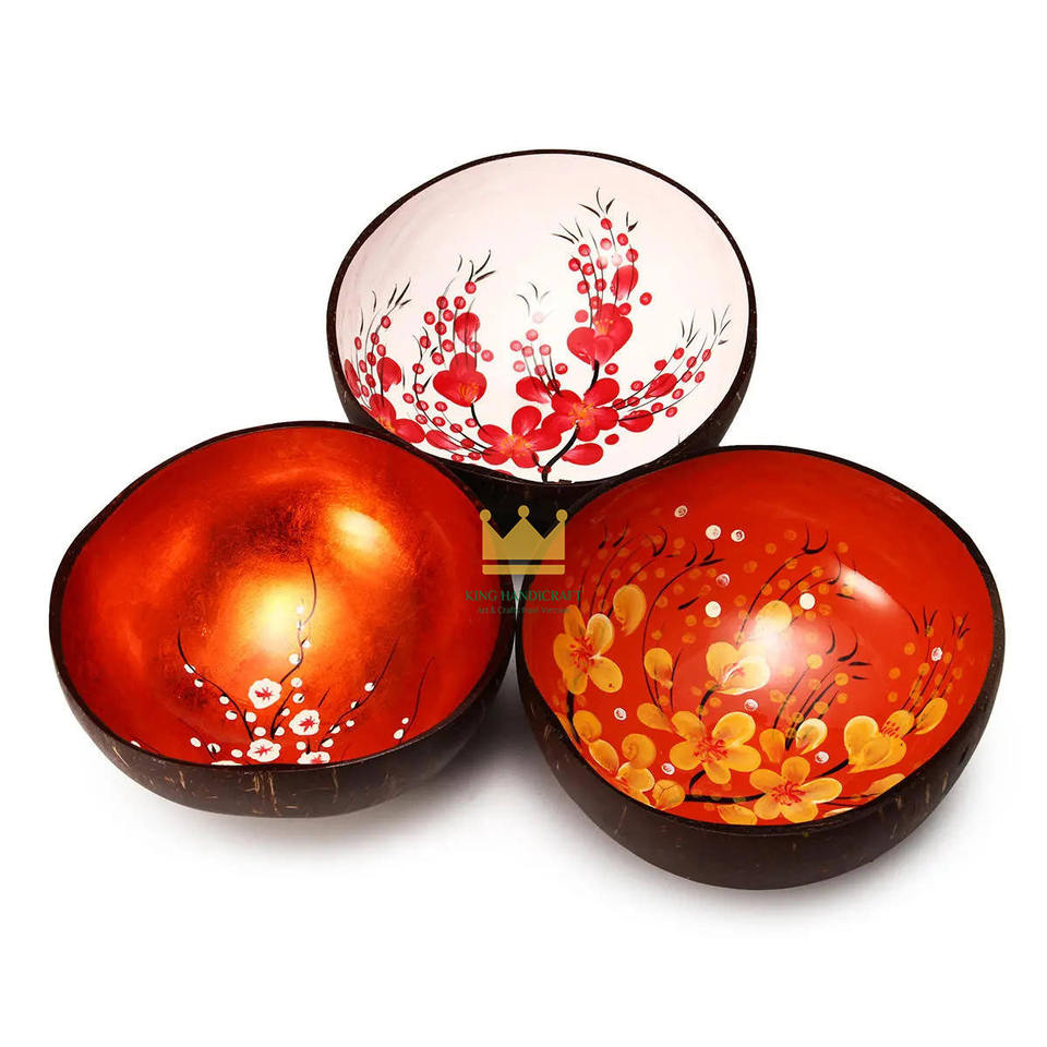 Vente en gros de bols artisanaux en bois laqué à base de coquille de noix de coco écologiques et durables, motif personnalisé, décoration intérieure, Vietnam