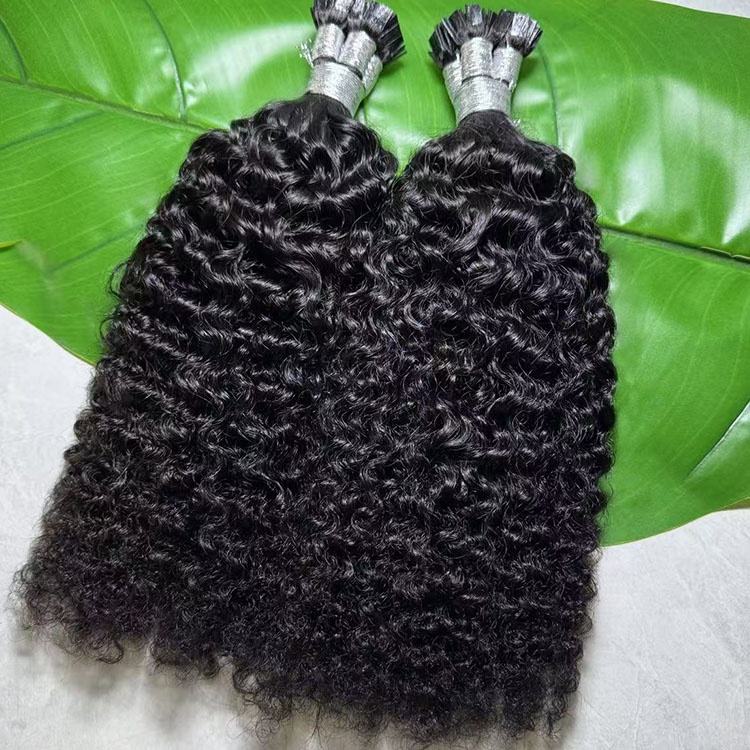 Wholesale kinky curly Pre-Bonded K-Tips Keratin Flat Tip Single Donor Cuticle Aligned Human Hair Extensions