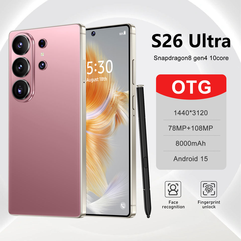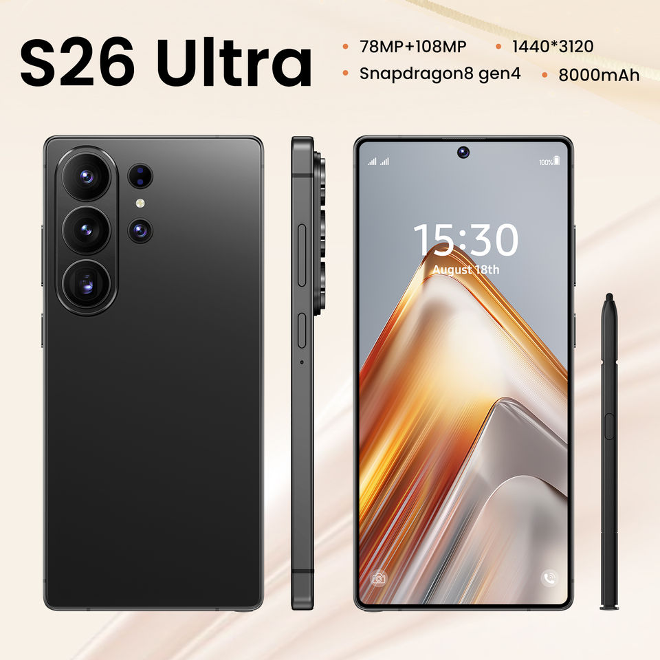 Smartphone Android 15 S26 Ultra haute définition avec grand écran, grande mémoire, double carte SIM, 165 Go + 1 To, batterie 8000 mAh – Vente en gros