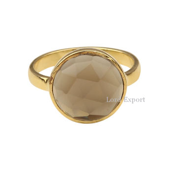 Nom du produit:Quartz fumé 925 argent sterling plaqué or bague de pierres précieuses