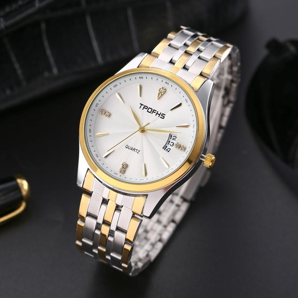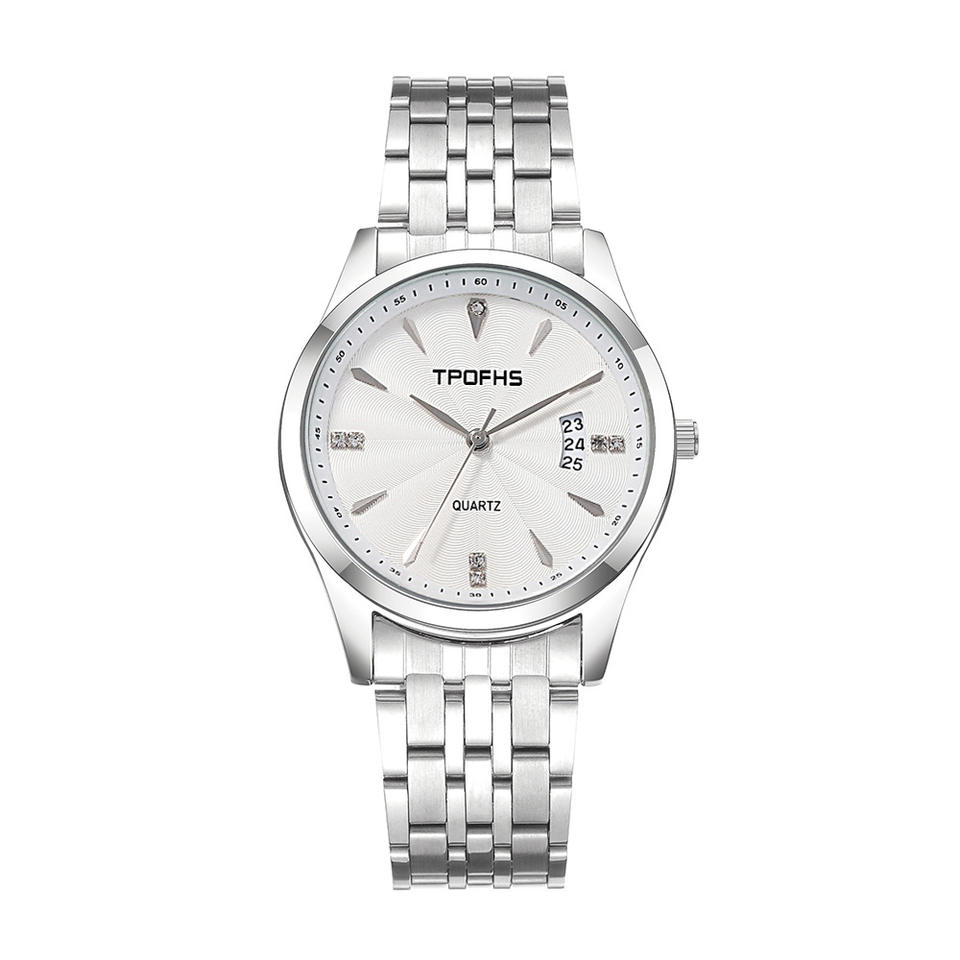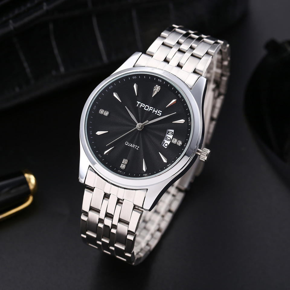 Wholesale men's steel band watches casual wave-patterned quartz watches with rhinestone markers and calendar