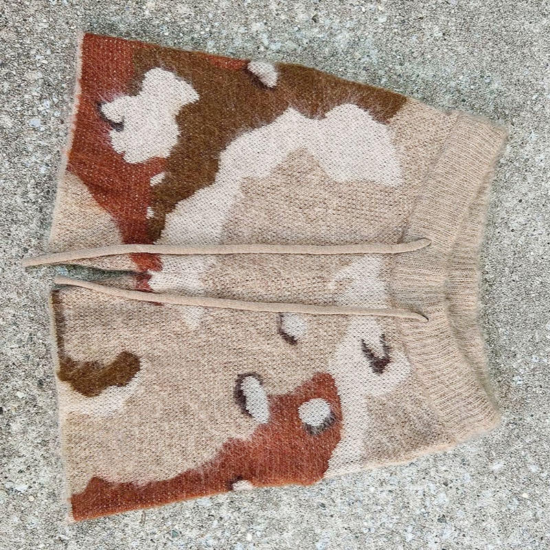 Wholesale mens mohair stripe knit shorts OEM supplier fashion streetwear warm fuzzy fabric OEM mens mohair drawstring shorts