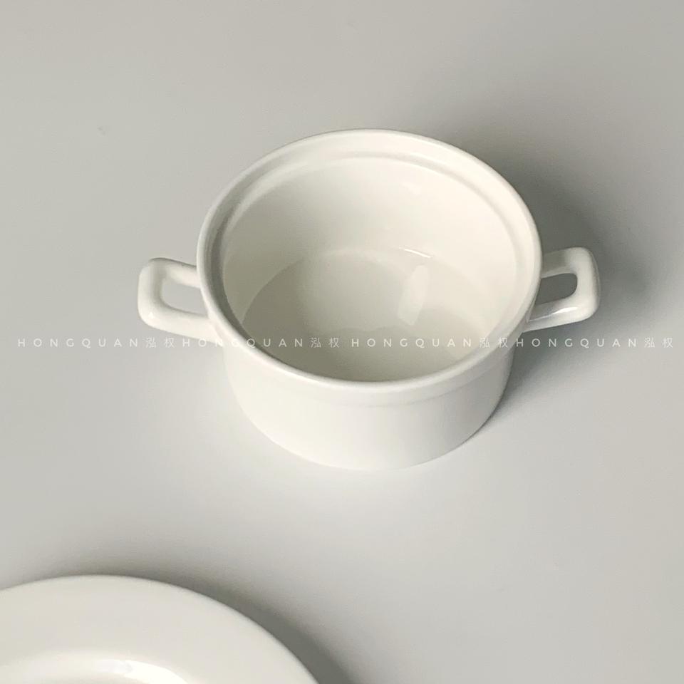 Wholesale of simple and pure white double-eared bowls, dessert baked rice bowls, yogurt oat egg custard bowls, and ceramic