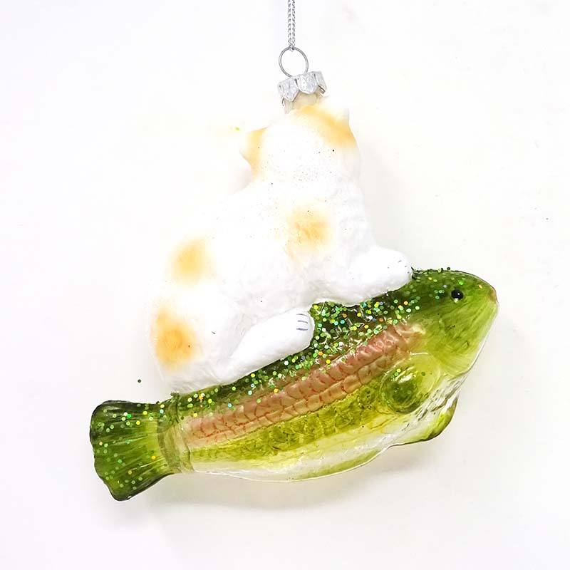 hand made:white cat pendant sitting on the fish