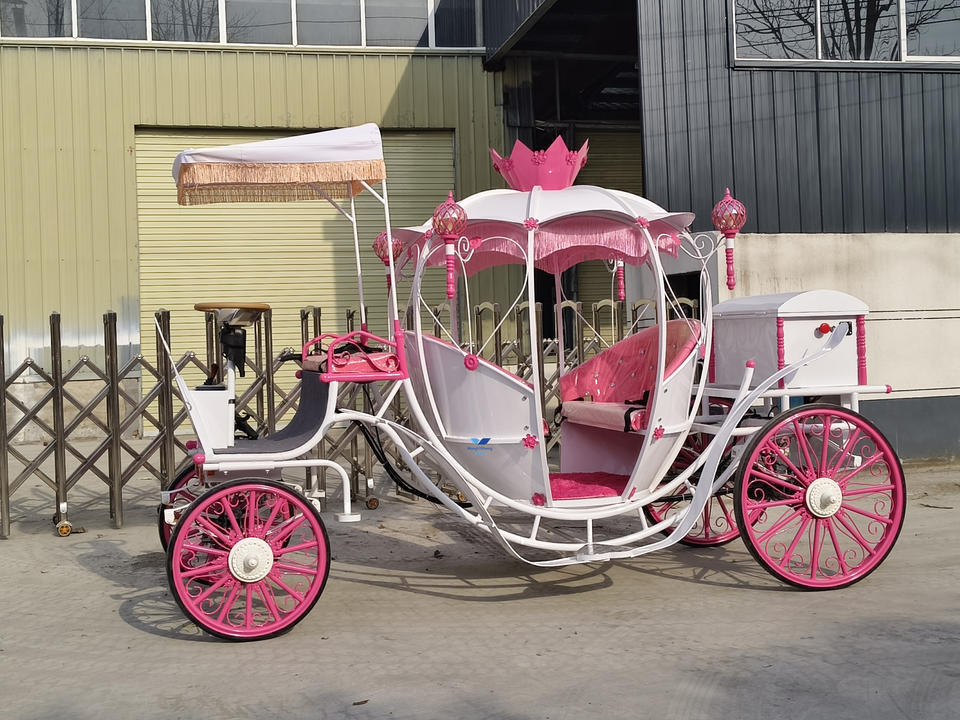 Wholesale pink Four Wheel Horse Drawn Wagon Custom Wedding Float for Events Luxury Fairytale Buggy