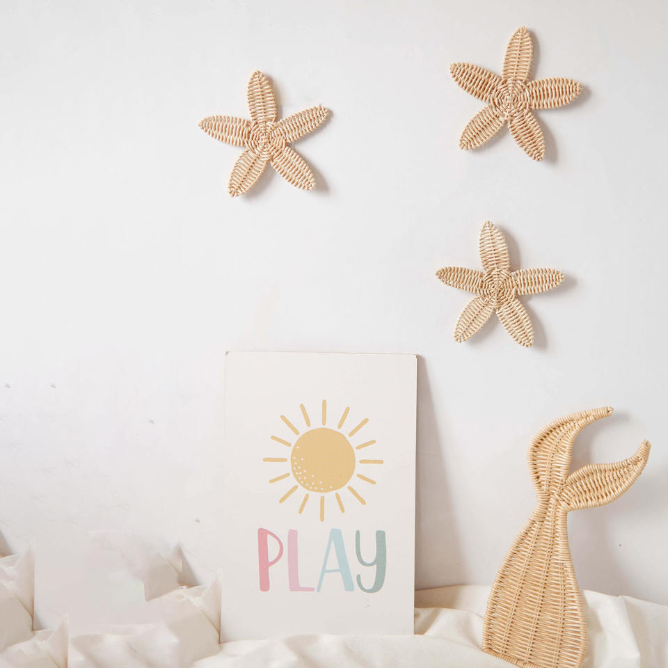 Wholesale Rattan Mermaid Tale and Starfish for Beach Theme Living Room Decor Ideas Best Selling Natural Wall Hangings