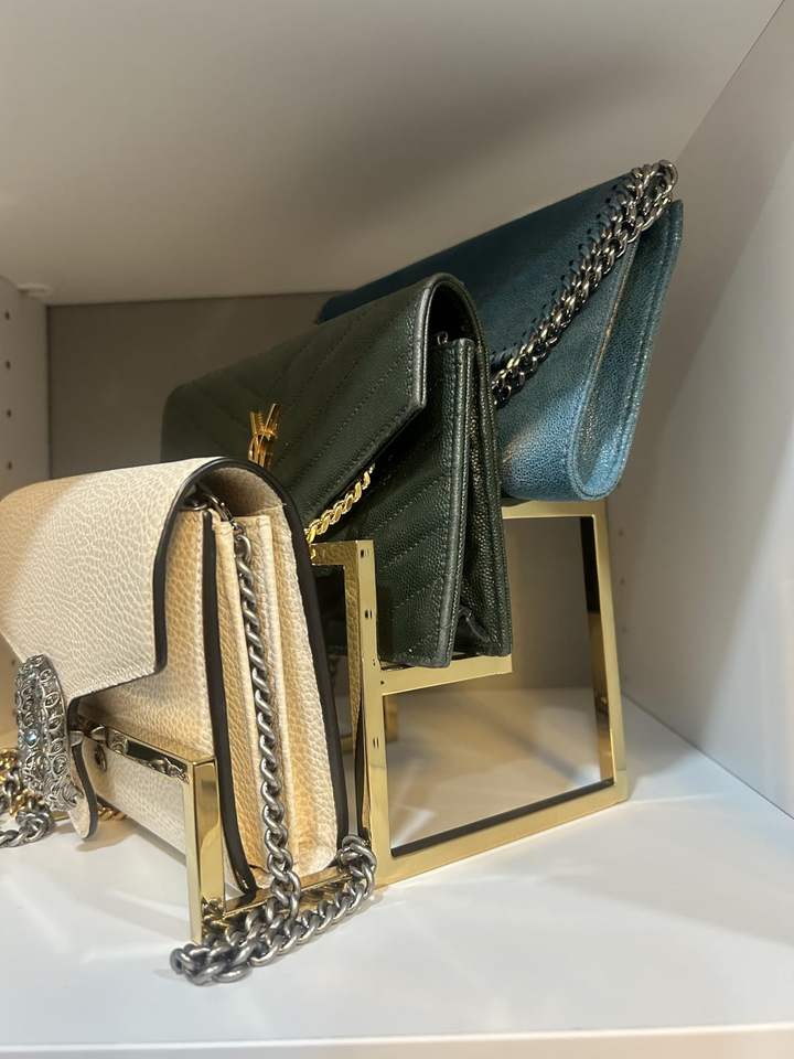 Wholesale Silver Golden 3-Layer Acrylic Wallet Display Rack Polished Surface for Clutch Holder Riser for Display Only