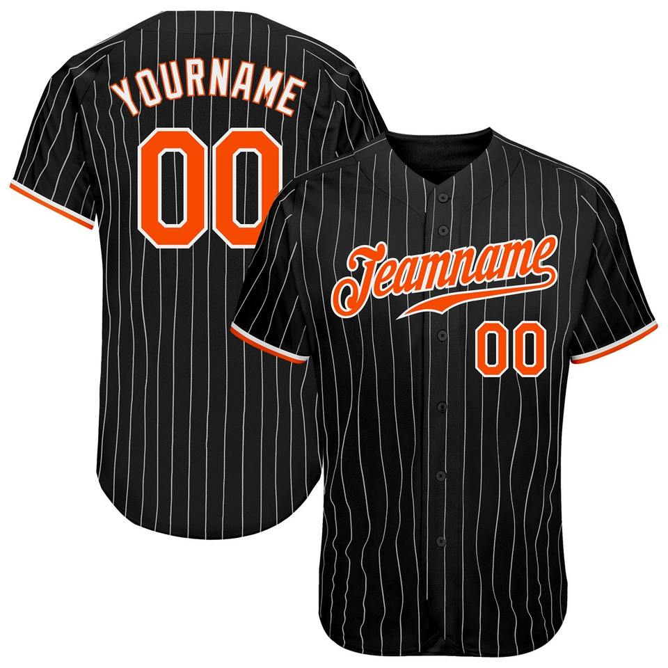 Wholesale sportswear apparel industry Custom Black White Pinstripe Orange-White Authentic Baseball Jersey
