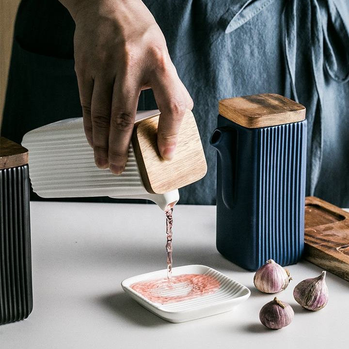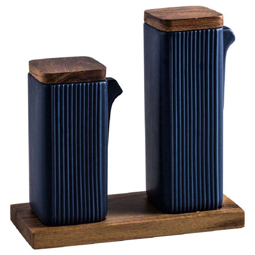 Wholesale square Straight Pattern Seasoning Bottle Kitchen Supplies Two-piece Oil and Vinegar Pot Ceramic Oil Bottle