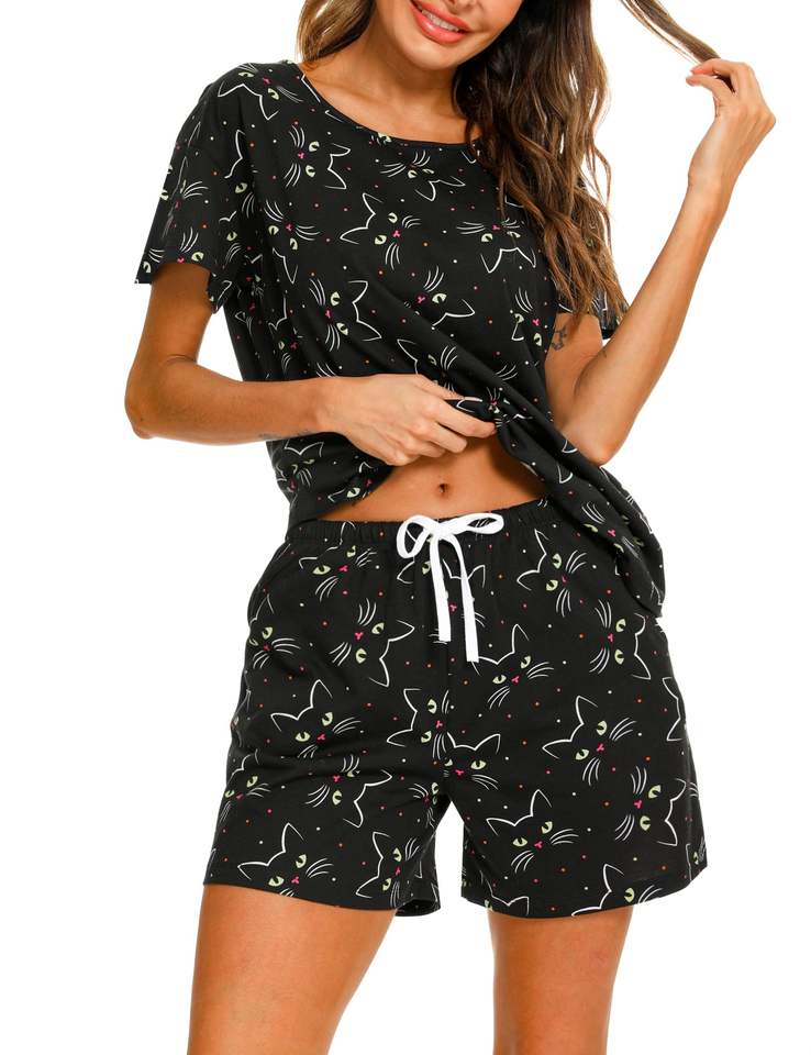 Vente en gros Ensemble 2 pièces de t-shirts et shorts 100% coton pour femmes