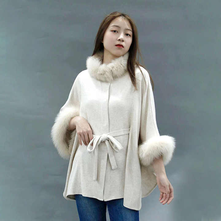 Material:wool blended +real fox fur collar