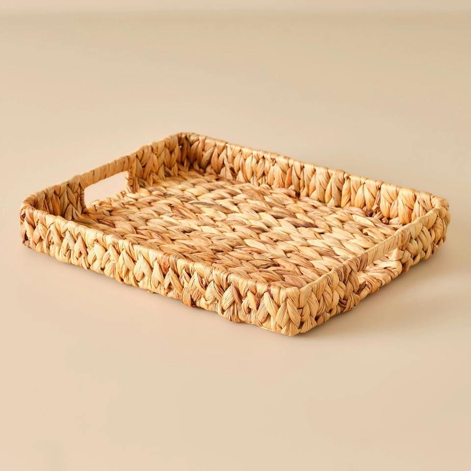 Wholesale water hyacinth rectangular natural fiber tray willow basket trays custom logo accept