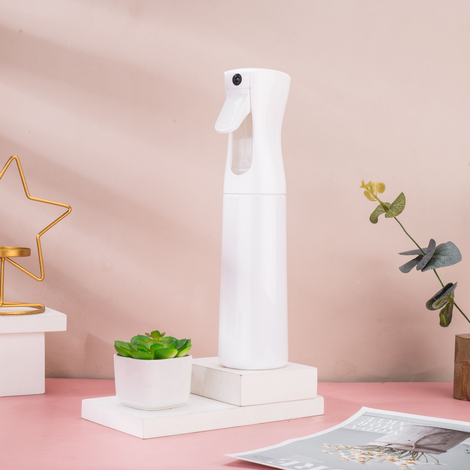 Flacon pulvérisateur continu blanc et noir en gros, flacon de laque pour cheveux. Marquages de couleur personnalisables disponibles. Nano spray