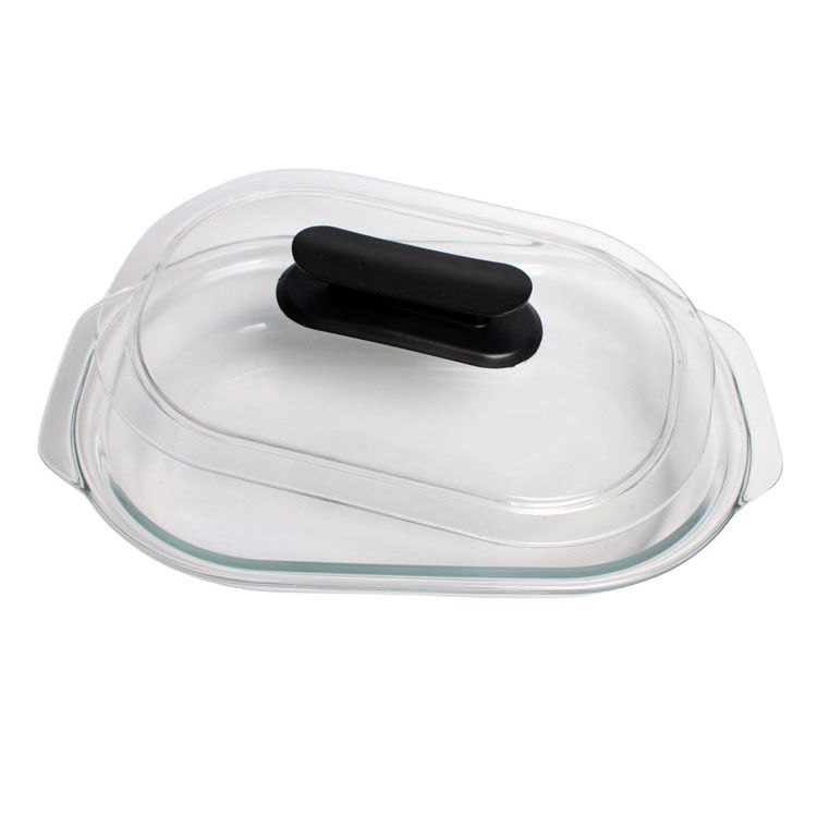 Plat à four rectangulaire en verre trempé 3,0 L avec poignée ergonomique, plat à four ovale en verre, plat à gratin en verre avec couvercle pour grossistes