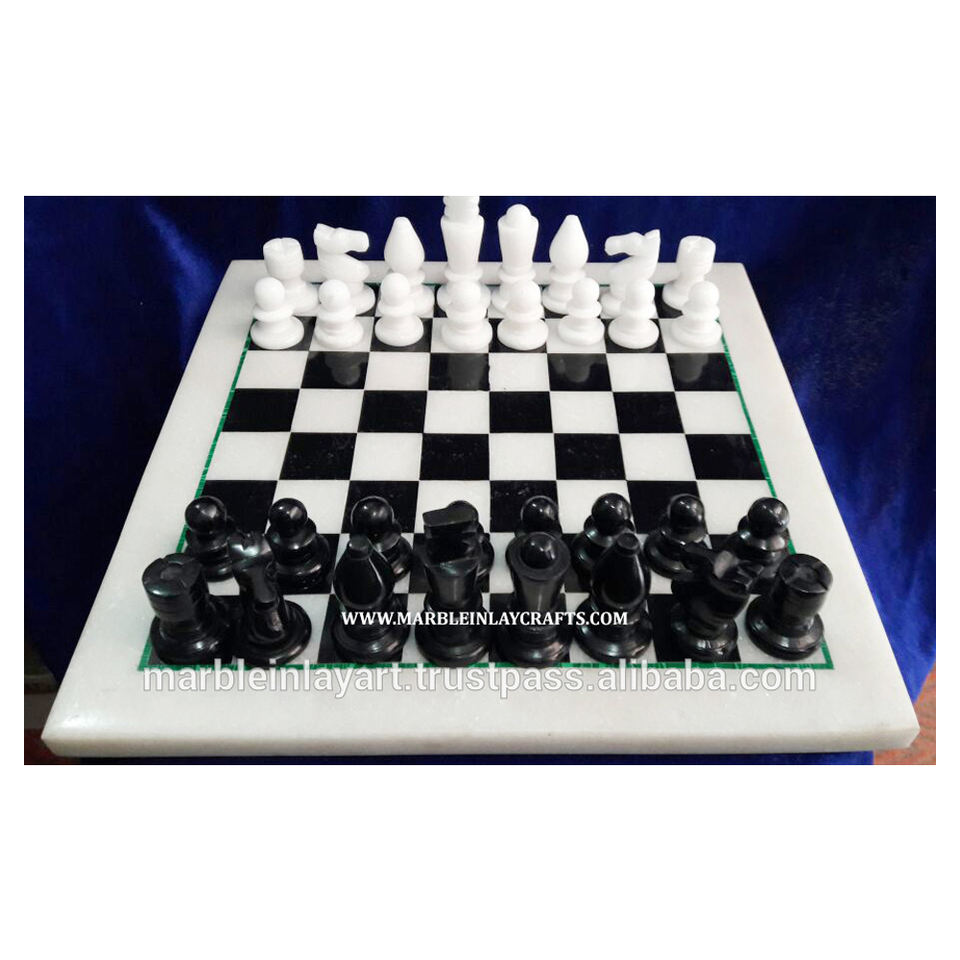 Grossiste en échiquier en marbre blanc pur fait à la main, personnalisé, surface polie brillante, origine Inde, marque HG pour la maison