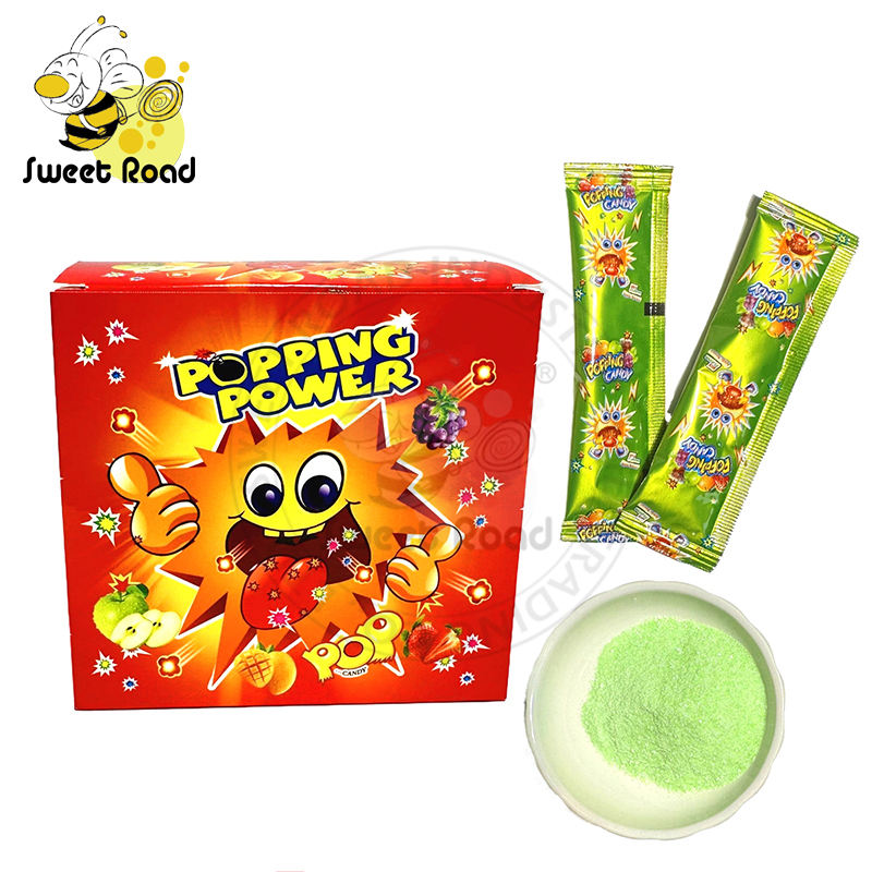 Bonbons pétillants aromatisés aux fruits en sachet long, fabrication OEM pour grossistes