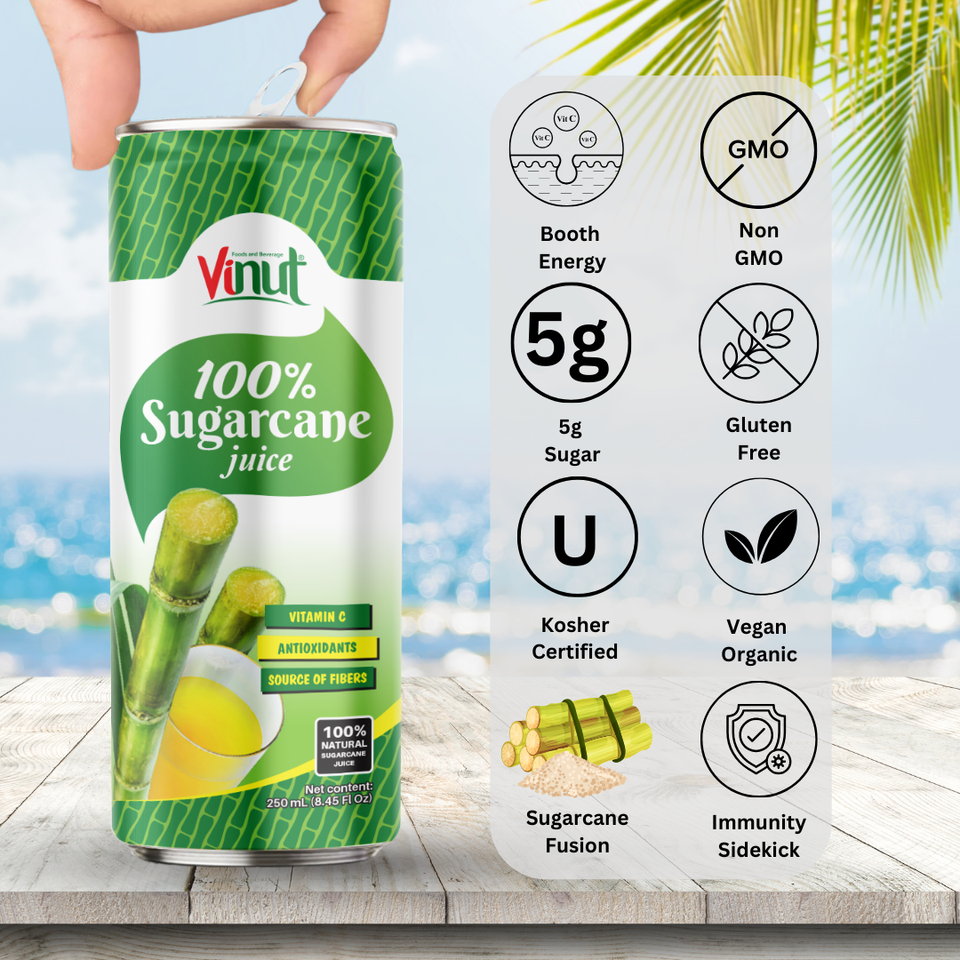 Ingredients:Sugarcane Juice Drink 250ml (8.4 fl oz) VINUT Vietnam Factory