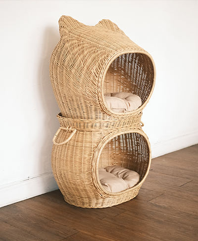 Maison pour animaux en rotin tressé à 2 niveaux avec coussin amovible, lits pour chiens et chats